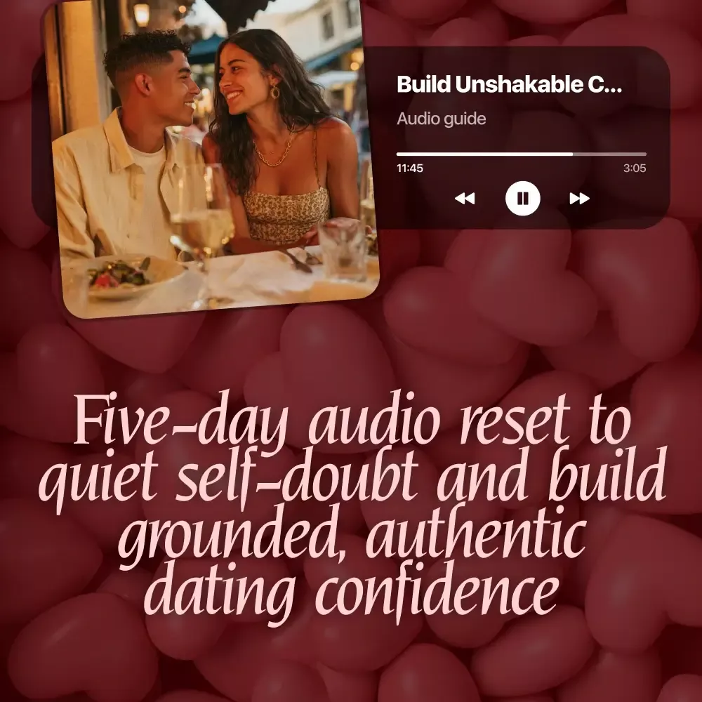 Build Unshakable Confidence for Dating in 5 Days is a guided Audio experience that helps you feel calm, authentic, and attractive in real-life conversations—without scripts or gimmicks. Across five focused days, you’ll listen, reflect, and practice simple shifts that quiet the inner critic, steady your body language, and unlock genuine presence. The result is confidence that feels natural, not performative. Confidence isn’t about being the boldest or most charming person in the room—it’s about being secure in who you are. If you’re ready to stop overthinking and start connecting, this digital download gives you a clear, compassionate path forward.