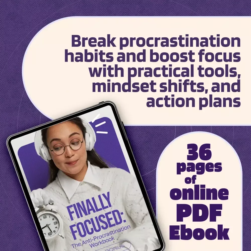 Stop letting procrastination control your time and energy. Download the Finally Focused: The Anti-Procrastination Workbook today and take the first step toward a more productive, focused, and confident you.
