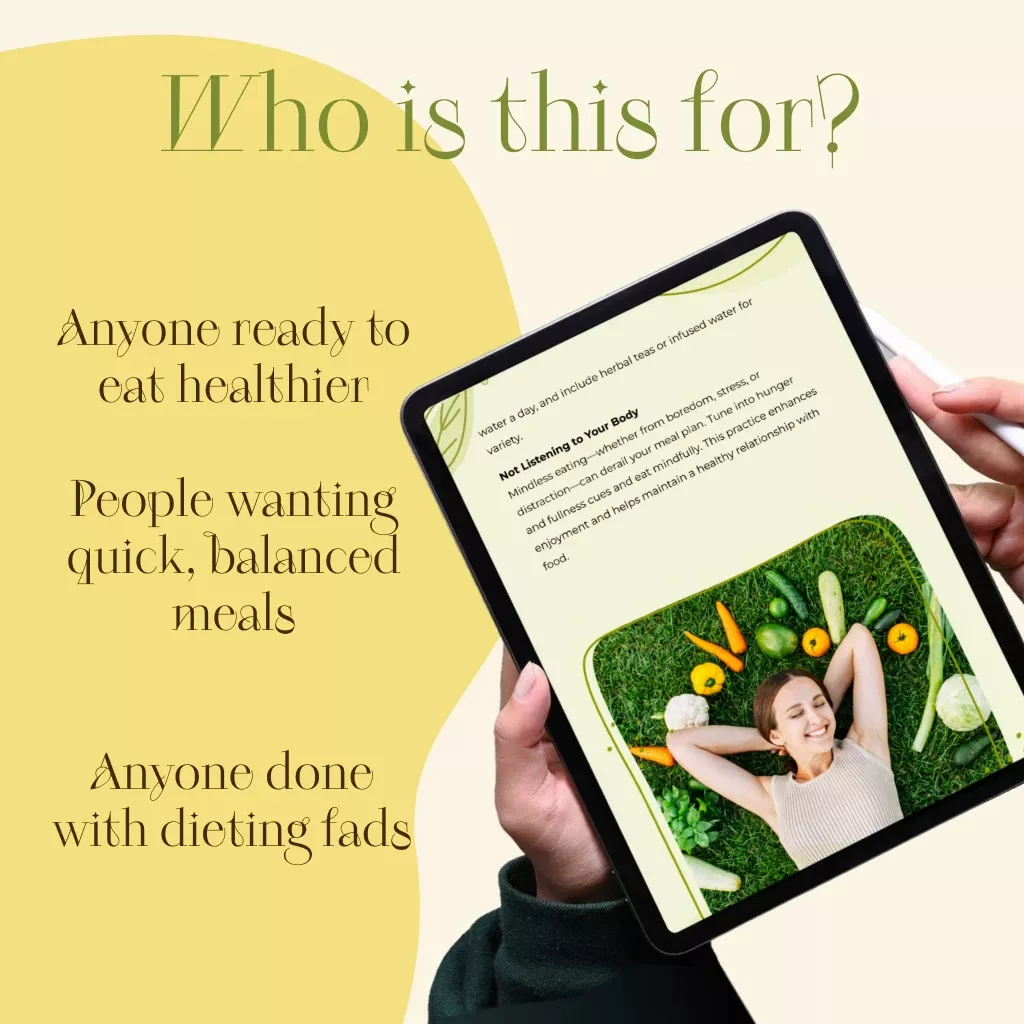 This eBook is perfect for anyone looking to eat healthier without overcomplicating it. Whether you’re a beginner trying to understand balanced nutrition or someone who just wants fresh, wholesome recipe ideas, this guide gives you the tools and confidence to succeed. It’s ideal for busy parents, working professionals, and anyone craving structure in their meals.